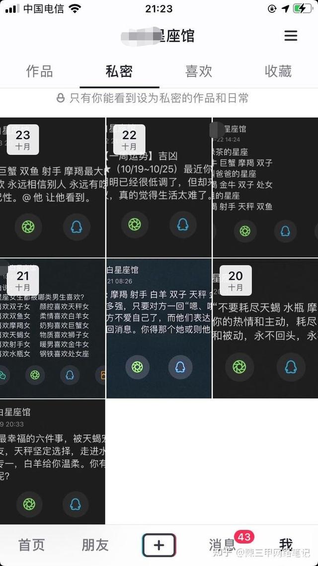 看到他们的心态,我只能呵呵了,他们总是看到别人几个视频就几万粉丝,几个视频就几十万,上百万的播放。他们往往不去想这些人他们发了多少视频,他们隐藏了多少视频,他们展现出来的东西往往都是你想看的东西。就比如我现在,虽然我学到现在已经感觉起来了,已经上路了,但是我也是把一些播放量不好的视频给隐藏了。如图:
