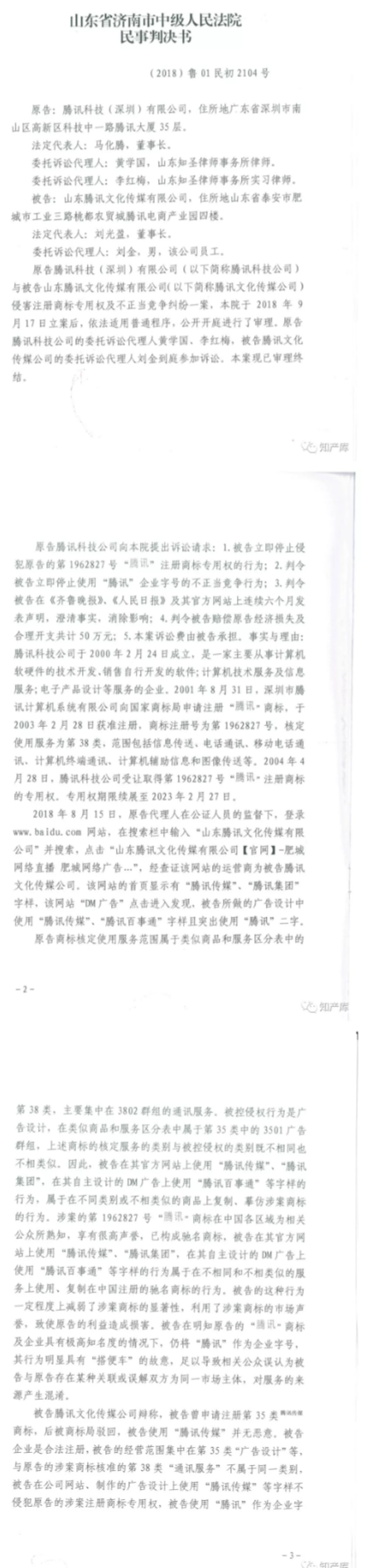 山东腾讯文化传媒有限公司,因侵犯“腾讯”商标专用权、构成不正当竞争,被济南市中级人民法院判决立即停止侵权行为,并赔偿30万元,同时认定“腾讯”为,据悉“腾讯”首次被认定为驰名商标